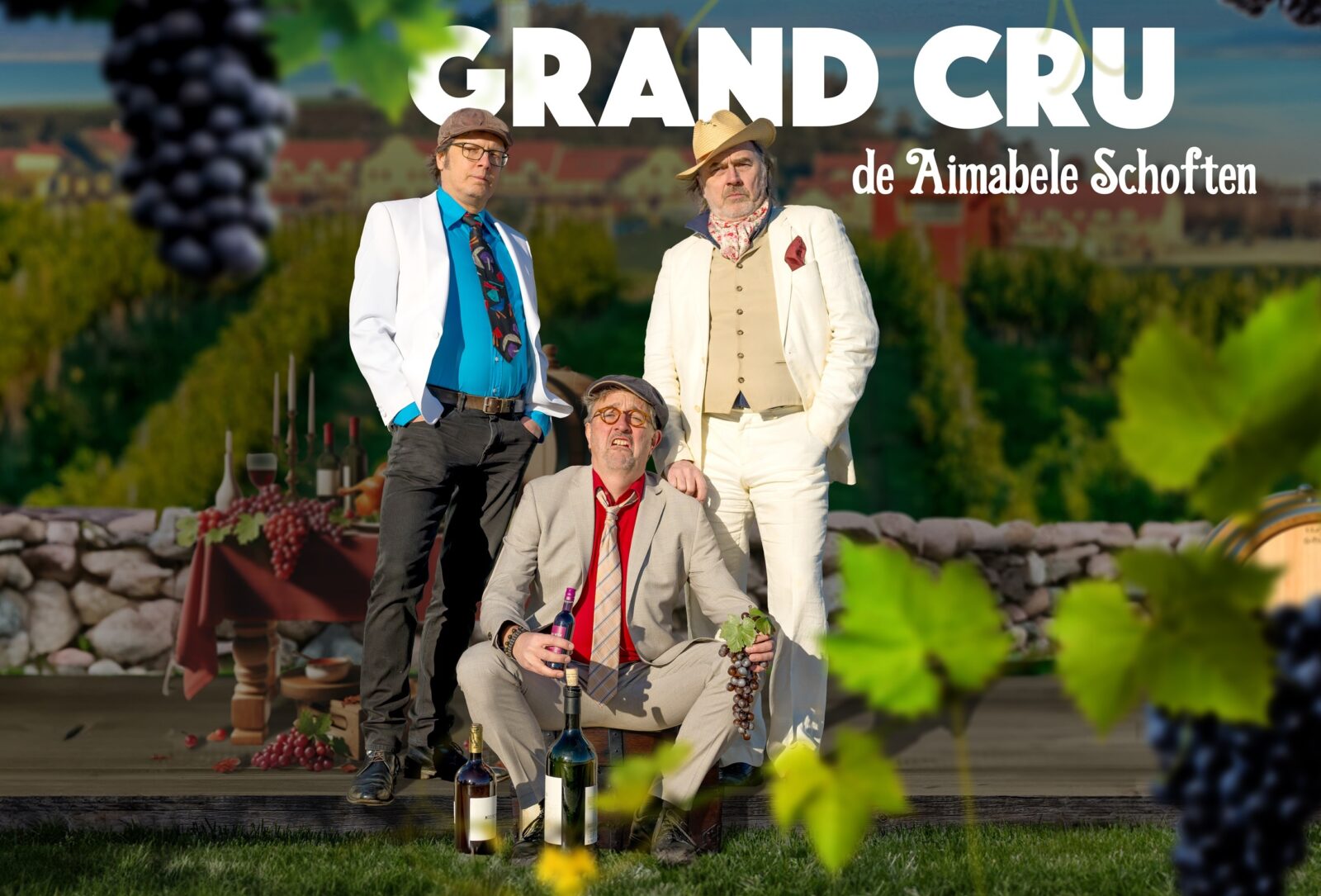 In Grand Cru hebben De Schoften aandelen in een wijngaard gekocht en overzien hun succesvolle carrière. Naast veel nieuw wijnmateriaal duiken ze af en toe in hun succesvolle verleden want afscheid nemen van De Vlieg en Oom Henk vinden ze maar lastig. De liefde voor wijn én het leven worden weer enthousiast voor het voetlicht gebracht. Maar de Schoften zouden de Schoften niet zijn als er ook weer subtiel wordt geklierd. En dat van die aandelen is ook nog maar de vraag…