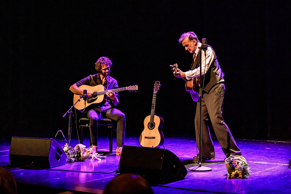 Twee mensen op het podium. Een zanger (een hele goeie!) en een gitarist (een fantastische!). Meer is er niet nodig om dat prachtige repertoire van Charles Aznavour te laten glinsteren en fonkelen: La bohème, Hier encore, For me formidable, Emmenez-moi. En natuurlijk ook She en La mama en nog zoveel meer.