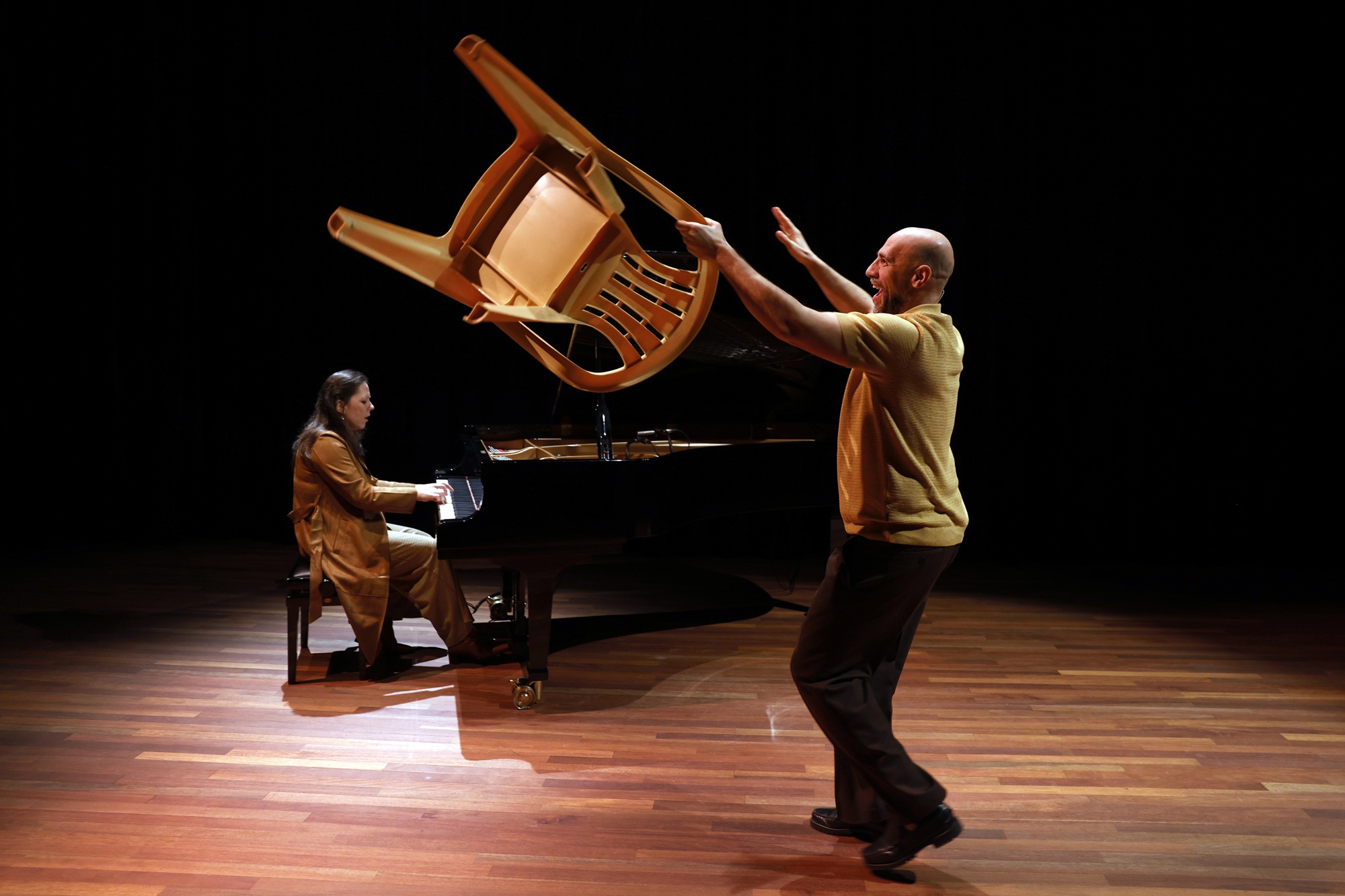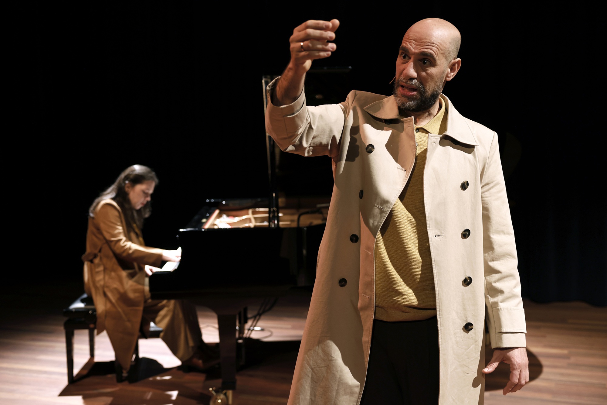 Ali en Nino (1937) is het liefdesverhaal van de islamitische Ali en de christelijke Nino die in de multiculturele stad Bakoe verliefd op elkaar worden. Dit verhaal wordt verteld tegen de achtergrond van de strubbelingen van de Eerste Wereldoorlog en de opkomst van het communisme. Met deze oriëntaalse Romeo en Julia gaan verteller en pianist het persoonlijke verhaal aan van biculturele identiteit in een meespelende en humoristische muzikale voorstelling.