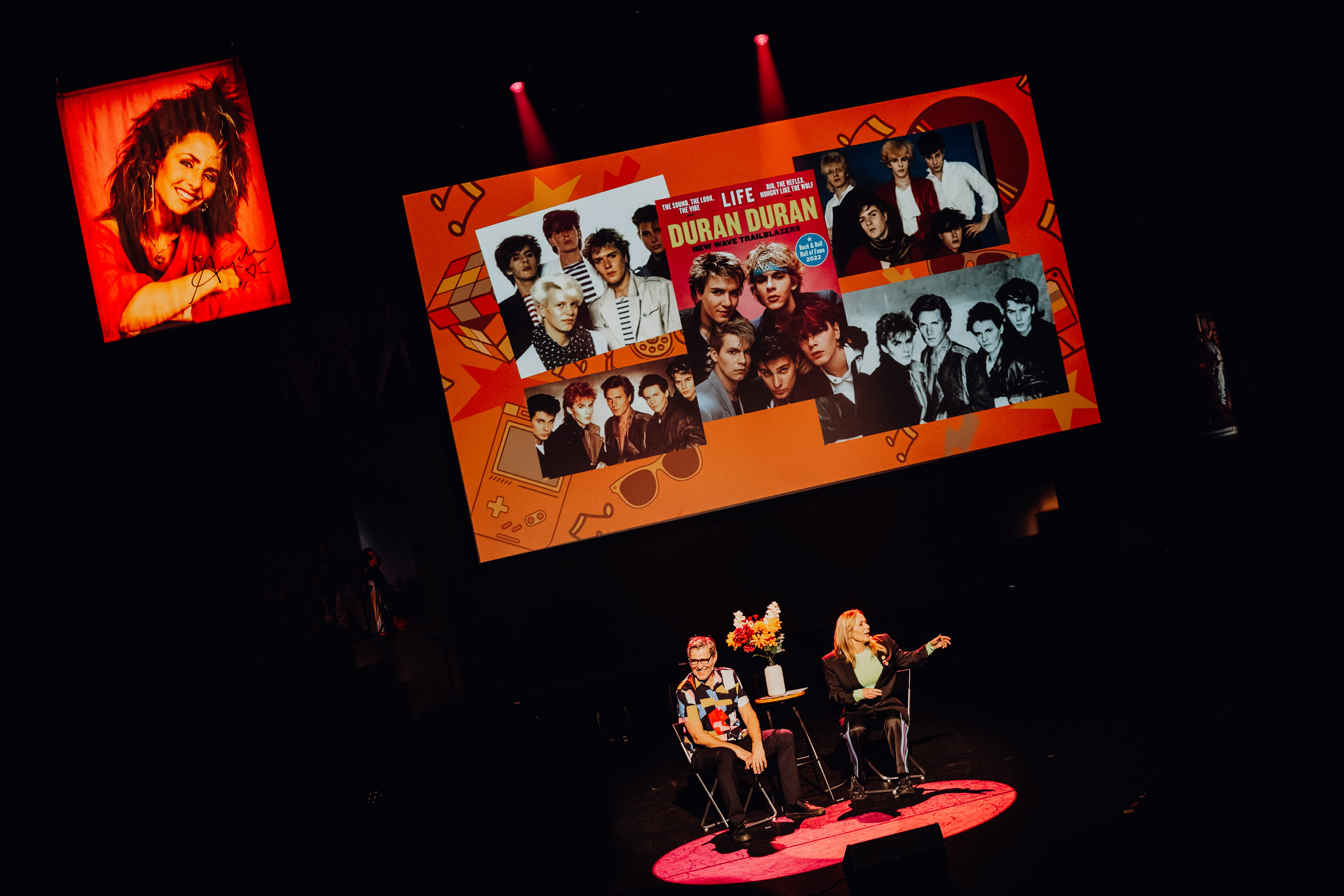 Tv-presentator en zanger Erik van der Hoff (Roberto Jacketti & the Scooters) en zangeres Angela Groothuizen (Dolly Dots) nemen je mee op een nostalgische reis door het decennium van spandex, schoudervullingen en legendarische hits. Op een groot scherm komen iconische muziekvideo’s en nieuwsfragmenten tot leven, waardoor de sfeer van de eighties volledig wordt herbeleefd.