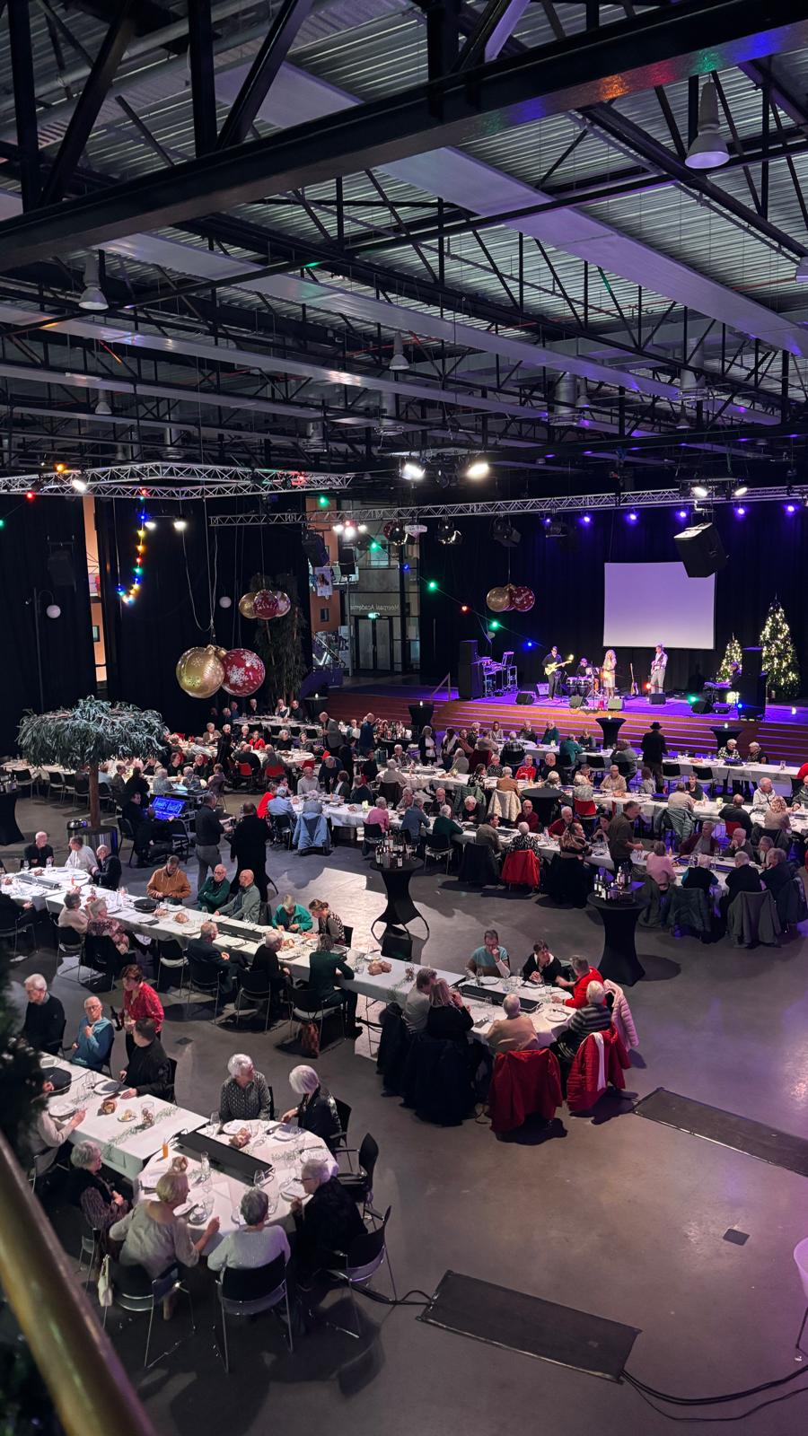 In samenwerking met de gemeente Dronten heeft De Meerpaal op woensdag 11 december jl. een feestelijk diner georganiseerd voor 250 vrijwilligers uit Dronten, Swifterbant en Biddinghuizen. De vrijwilligers, onder andere actief bij de Voedselbank, Tafeltje Dekje en De Meerpaal, werden in het zonnetje gezet voor hun waardevolle bijdrage aan de gemeenschap. Aan lange, feestelijk gedekte tafels werden zij de hele avond bediend door de managers en leden van de raad van toezicht van De Meerpaal, terwijl andere medewerkers hun steentje bijdroegen in de keuken. Het driegangendiner, met als hoogtepunt het gezamenlijk gourmetten, was een klein gebaar van dankbaarheid voor de grote impact die de vrijwilligers hebben op het dagelijks leven van de inwoners van de gemeente Dronten. De band Cloud Illusion zorgde voor de muzikale omlijsting.