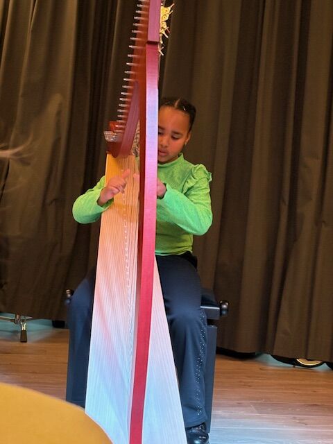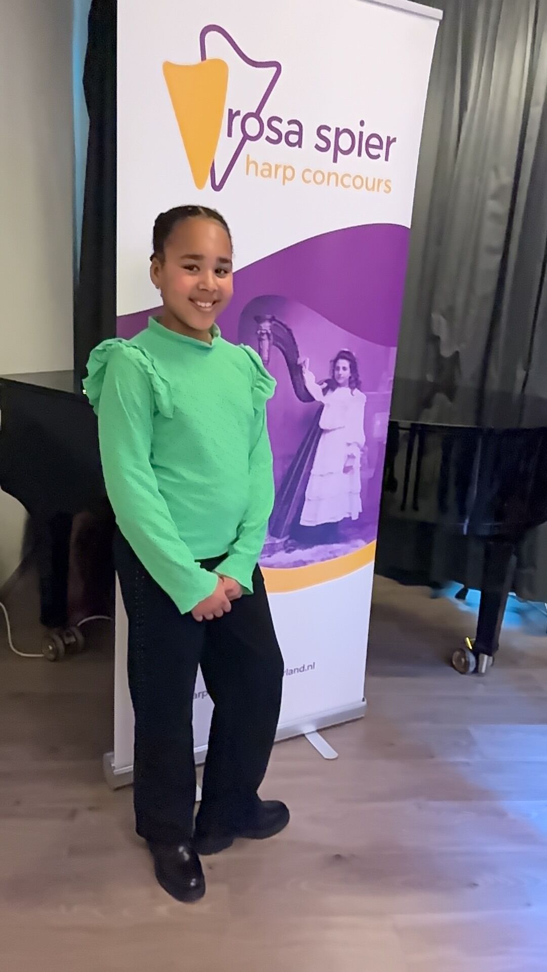 Onze harpleerling Elisabeth Harry (10) uit Dronten heeft afgelopen zaterdag 24 januari deelgenomen aan het Rosa Spier Harp Concours in Bilthoven. Dit tweejaarlijkse concours, georganiseerd door de Harp Vereniging Nederland, is bedoeld voor keltische harp- en pedaalharpspelers t/m 21 jaar uit heel Nederland. Het concours biedt jonge harpisten een podium om zich muzikaal te ontwikkelen, elkaar te inspireren en ervaring op te doen richting (inter)nationale concoursen.