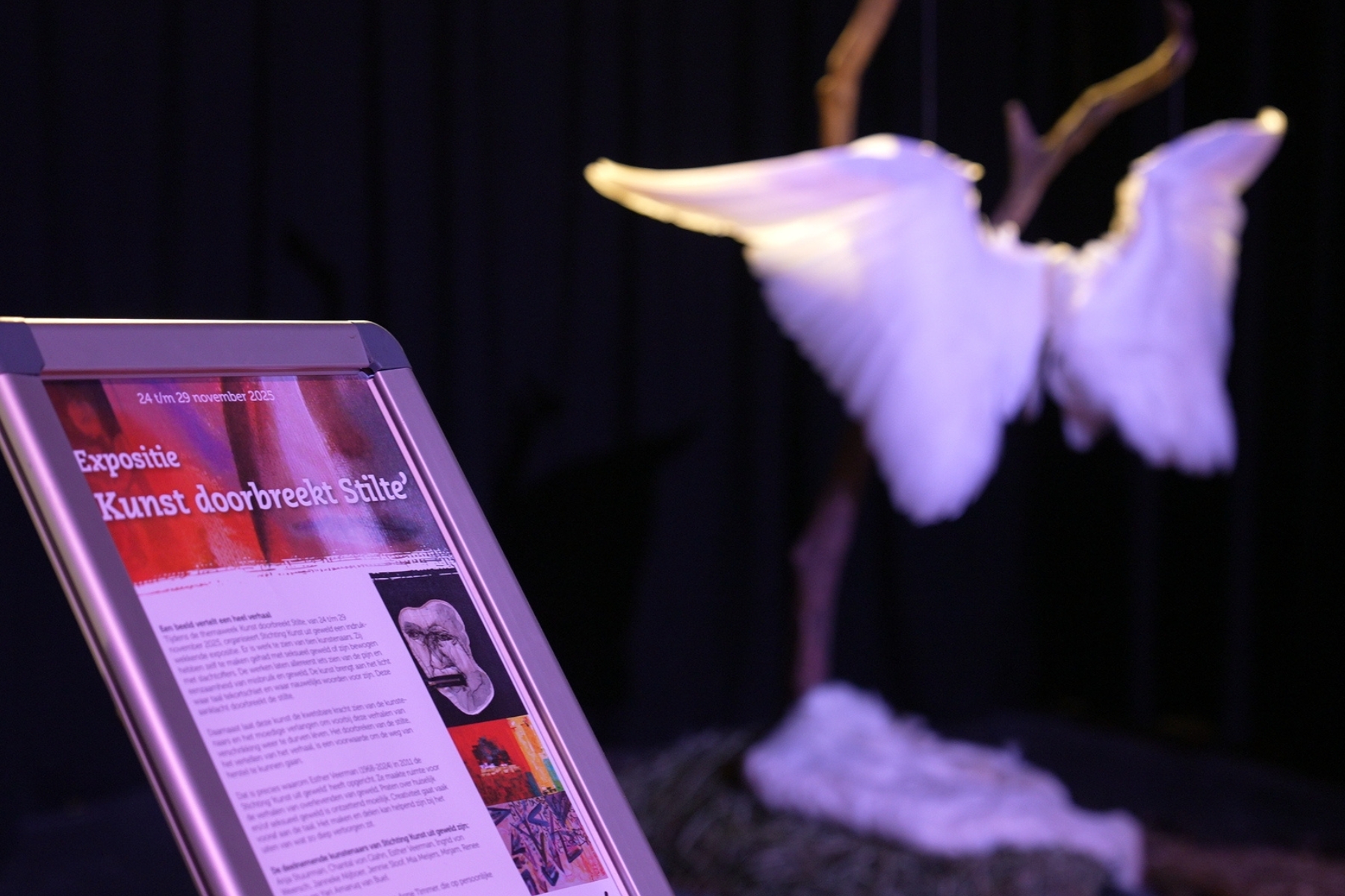 Een bijzonder en moedig hart van de week was de expositie met werk van elf kunstenaars. Voor vier van hen was het hun eerste expositie én de eerste keer dat zij zich publiekelijk uitspraken als slachtoffer. Dat vroeg ongelooflijk veel moed. De herkenning, erkenning en steun onderling was voelbaar en leidde tot open gesprekken met bezoekers. Ook tijdens lezingen, filmvertoningen en ontmoetingen ontstond er iets waardevols: mensen luisterden, deelden hun eigen ervaringen en vonden in elkaars verhalen herkenning.